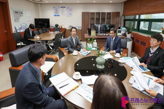 [프레스뉴스] 장현준 기자= 안산시의회 송바우나 의장이 16일 한국산업단지공단 경기지역본부를 찾아 공단의 박진만 경기지역본부장과 안산시 산업진흥과 담당자들을 비롯한 관계자들과 안산스마트허브 관련 현안을 주제로 간담회를 가졌다.
