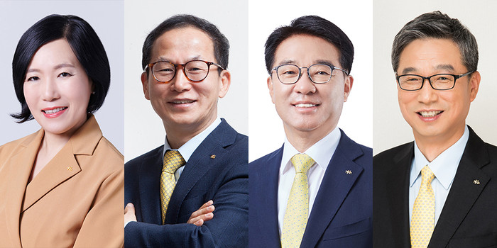 | ▲ 사진 왼쪽부터 박정림 KB금융지주 총괄부문장(KB증권 대표이사), 양종희 KB금융지주 부회장, 이동철 KB금융지주 부회장, 허인 KB금융지주 부회장(사진=KB금융그룹) |