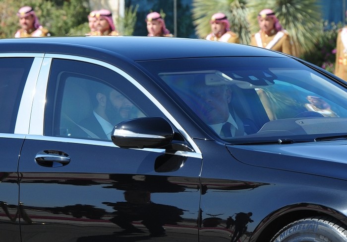 [프레스뉴스] 채정병 특파원=26일(현지시간) 요르단 암만 마르카 군공항에 도착한 아흐마드 알 샤라(왼쪽) 시리아 대통령이 압둘라 2세 국왕이 운전하는 차를 타고 이동하고 있다. 2시간 가량의 짧은 방문에서 알 샤라 대통령은 압둘라 2세 국왕과 양국 간 경제, 에너지 분야 등에서의 협력을 논의하고 시리아의 온전한 재건을 지지하는 요르단에 사의를 표했다.