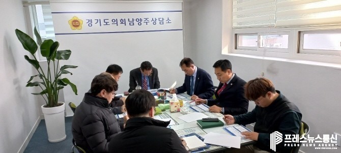[프레스뉴스] 김대일 기자= 경기도의회 유호준 의원 주도로 8호선 연장선이 지나가는 구간의 경기도의원들(김창식, 백현종, 이은주, 유호준)이 경기도의회 남양주 상담소에 모여 철도건설과 구자군 과장 등 관계 공무원으로부터 현재 8호선 연장 공사 관련 공사 추진 현황 보고를 받았다.