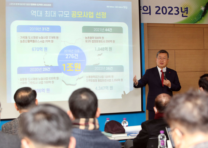 박 시장은 이날 기자회견을 통해 2023년 밀양시가 역점적으로 추진할 시정 방향과 비중 있게 추진할 핵심사업에 대해 자세히 설명했다. 특히 민선 6기부터 추진해온 대형 사업들을 성공적으로 마무리해 반드시 영남권의 중심도시로 우뚝 서겠다는 포부를 내비쳤다.