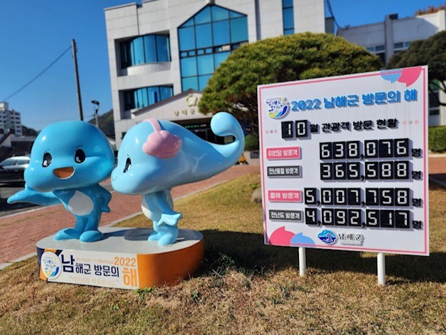 방문 관광객 수는 남해군 주요 관광지의 무인 계수 및 입장객 매표 수를 집계한 자체 통계 자료이며, 남해군 방문객 전체를 집계하는 한국관광공사 데이터랩 자료에 따르면 올해 9월까지 누적 방문객 수는 673만여 명으로 나타났다.