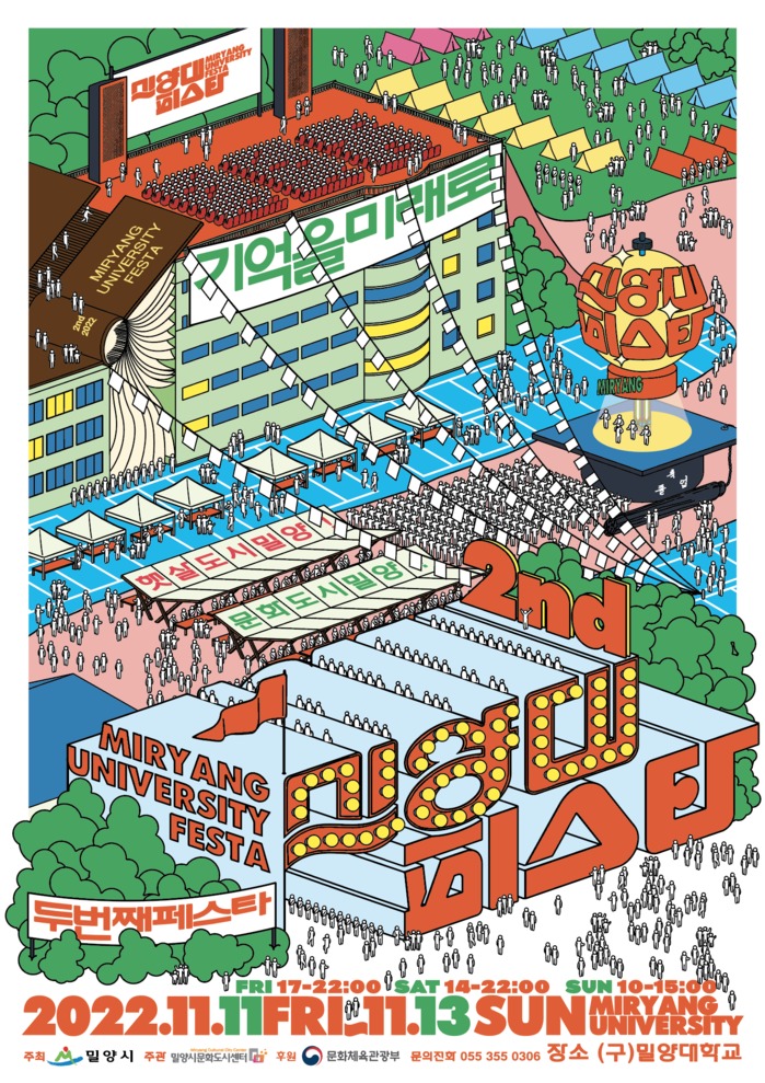 ‘기억을 미래로’란 주제로 개최되는「2022 밀양대 페스타」는 2004년 부산대학교가 삼랑진읍 임천으로 이전한 후 18년간 닫혀 있던 밀양대를 활용할 수 있는 방안을 찾아 침체된 인근 상권을 회복하고 도시의 활력을 살리는데 그 목적이 있다.