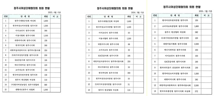 | ▲ 청주시에 보고한 청주시여성단체 회원현황 |