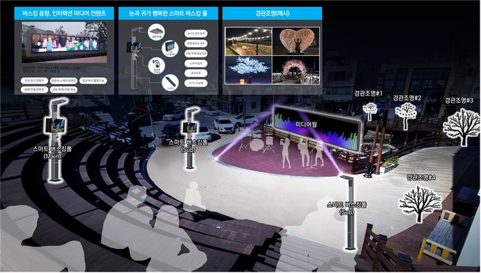IoT기술로 길거리공연을 지원하는 스마트 버스킹 시설과 단독으로 미디어 영상을 송출할 수 있는 투명한 스크린을 활용한 인터렉션 미디어, 그리고 공연장 주변 경관개선을 위한 조명장치 등이 설치된다.