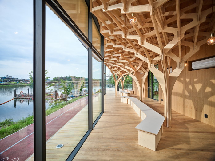 | ▲ 진주시가 대한민국목조건축대전에서 대상을 수상한 ‘물빛나루쉼터’ 내부.(사진=진주시) |