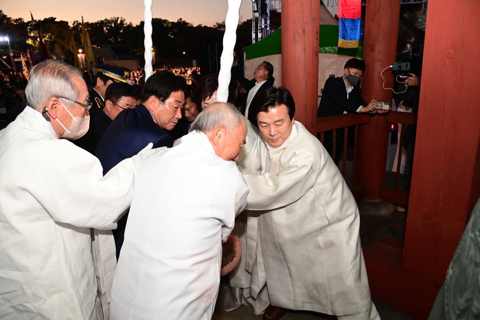 이날 서제는 강화도 마니산에서 채화하던 성화를 진주성에 직접 채화해 성화대에 안치하는 성화 채화를 시작으로, 호국 종각에서는 국태민안 및 무병장수를 비는 33번의 호국 타종 의식이 거행됐다.