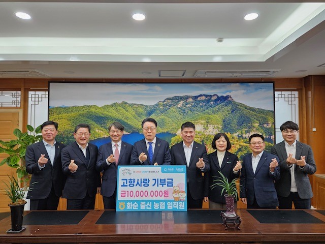 구복규 화순군수는 “3년 연속 고향사랑기부를 이어온 농협 임직원들에게 진심으로 감사드리며, 3년 연속 기부를 이어가며 지역 사회 발전에 기여해 주신 것은 화순군민들에게 너무나 큰 의미가 있다. 화순군 발전의 원동력이 될 수 있도록 소중히 사용할 것”이라고 밝혔다.