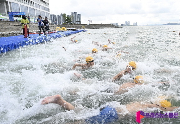 | ▲철인3종 종목 중 수영에 도전하고 있는 선수들(사진=시흥시) |
