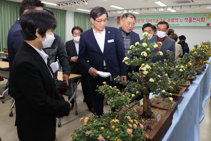 국화분재 담당자는 “교육생들이 예년보다 다양한 형태의 작품을 만들어줘서 더욱 풍성한 수료식이 되었다. 군청과 농업기술센터 로비에 전시되는 작품들을 보며 진한 국화향기에 흠뻑 취해보시길 바란다”고 말했다.