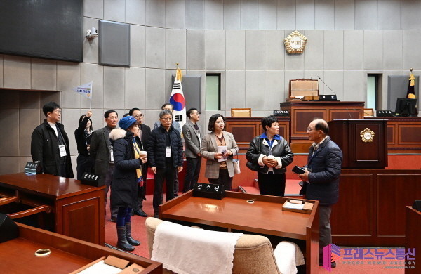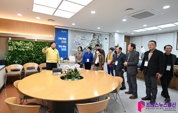[프레스뉴스] 장현준 기자= 8일, 시흥시청 본관과 별관 주요 부서, 의회동에서는 ‘시흥시 어르신위원회’ 위원 13명이 참여한 시청사 견학이 이뤄졌다. 위원들은 청사 곳곳을 둘러보며 시정 운영 과정을 확인하고, 향후 개선이 필요한 정책에 대해 의견을 나누며 소통하는 시간을 가졌다.