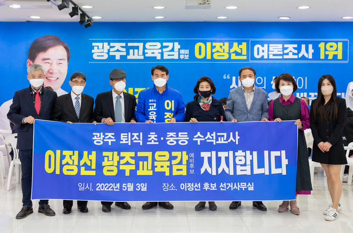 [광주=프레스뉴스] 박정철 기자= 고윤숙 초등수석교사회 1대 회장, 이형용, 이병섭 중등수석교사회 1,2기 회장 등 전직 광주 초중등 수석교사 17명이 3일 이정선 광주시교육감 예비후보 지지를 선언했다.