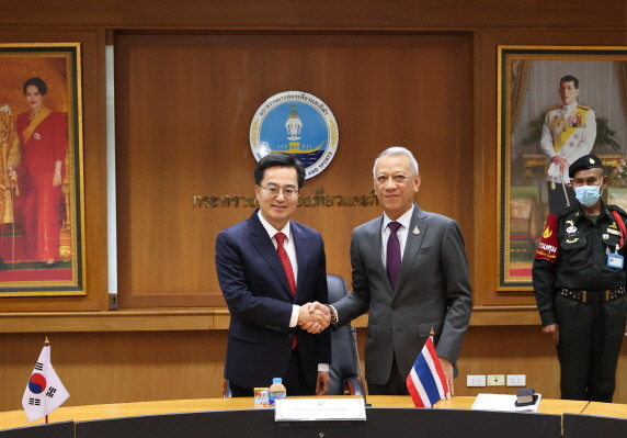 | ▲ 현지시간 7일 오후 태국을 방문한 김동연 경기도지사가 피팟 라차킷프라칸 태국 관광체육부 장관과 기념촬영을 하고 있다.(사진=경기도) |