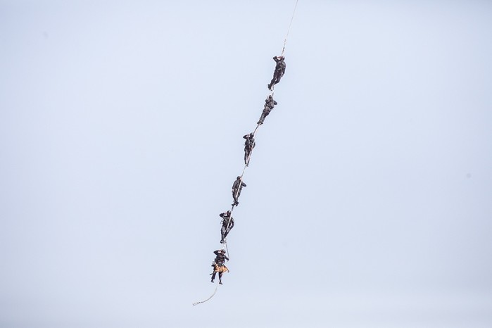 [프레스뉴스] 채정병 특파원=3일(현지시간) 요르단의 대표적 국제 방산 전시회인 2024 특수작전 장비전시회(SOFEX)가 요르단 남부 항구도시 아카바 국제전시컨벤션센터에서 73개국 300여개 방산회사가 참가해 3일간 진행되는 가운데 개막식에서 요르단 특수부대원들이 고공낙하시범을 펼치고 있다. (사진=요르단 왕실 제공)