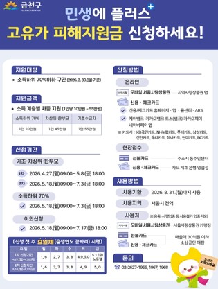 금천구, '1차 고유가 피해지원금' 27일부터 지급 개시