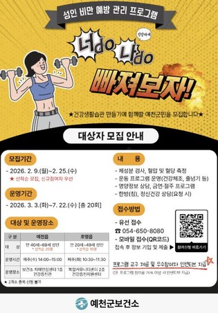 - 예천군, '2026년 성인 비만 예방 관리' 참여 대상자 모집