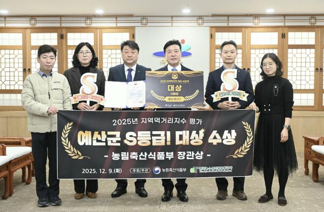 예산군은 농림축산식품부가 주최하고 한국농수산식품유통공사(aT)가 주관한 2025년 지역먹거리지수 평가에서 전년 대비 두 단계 상승한 최고 등급 S등급을 달성하고 대상을 수상하는 성과를 거뒀다고 밝혔다.