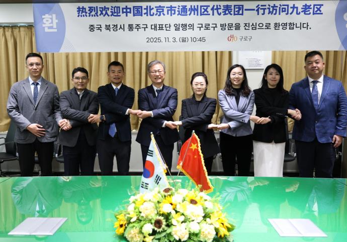 구로구가 지난 3일 자매결연 도시인 중국 북경시 통주구 대표단을 맞이하고 양 도시 간 우호 협력 강화를 위한 간담회를 개최했다.