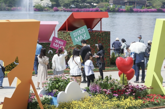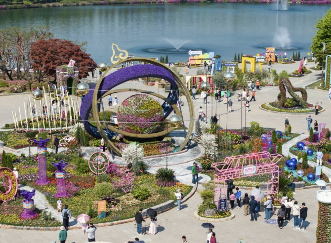 ‘꽃, 시간을 물들이다’를 주제로 열리는 꽃박람회는 야외정원과 실내 전시, 공연·체험을 결합한 복합형 축제로, 5월 10일까지 17일간 운영된다.