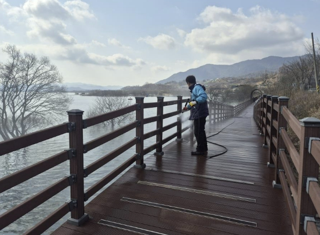 또한 겨울철 먼지와 오염으로 얼룩진 예당호 전망대 외벽을 세척하고 이용객 통행이 많은 느린호수길 데크 구간의 이물질을 제거하는 등 보행 환경 개선에도 힘썼다.