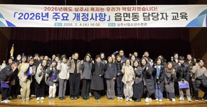 상주시에서는 지난 4일 청소년수련관에서 읍면동 공무원을 대상으로 2026년 주요 복지사업 개정사항에 대한 전달교육을 실시했다.