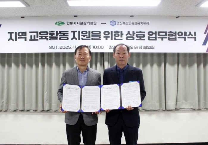 안동시시설관리공단은 11월 3일 공단 회의실에서 경상북도안동교육지원청과 ‘지역 교육활동 지원을 위한 업무협약(MOU)’을 체결했다.