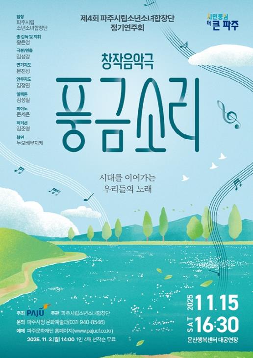 파주시는 오는 15일 16시 30분, 문산행복센터 대공연장에서 파주시립소년소녀합창단 제4회 정기연주회 ‘풍금소리’를 개최한다고 밝혔다.