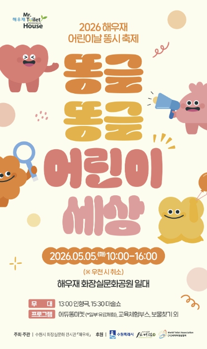 ‘2026 해우재 어린이날 똥시 축제-똥글똥글 어린이 세상’이 5월 5일 오전 10시부터 오후 4시까지 해우재 화장실문화공원 일원에서 열린다.