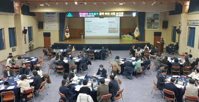 인천 미추홀구는 23일 구청 대회의실에서 ‘2026년 민선 8기 공약 추진 사항 보고회’를 개최하고 그간의 성과를 종합적으로 점검했다.