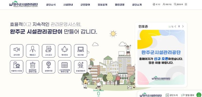 새롭게 마련된 홈페이지는 공영마을버스, 공영주차장, 고산자연휴양림, 공설공원묘지 등 완주군 내 주요 시설의 안내와 이용 정보를 한 곳에서 통합 제공한다.