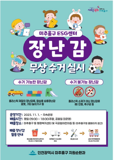 인천 미추홀구시설관리공단(이사장 박종구)은 구(區) 자원순환과가 주관하는 ‘장난감 무상 수거 및 수리 사업’에 동참한다고 3일 밝혔다.