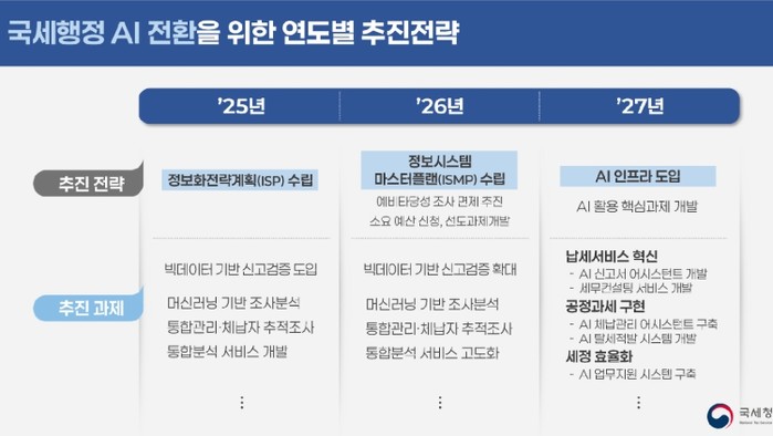 | ▲ 국세행정 AI 전환을 위한 연도별 추진 전략 |