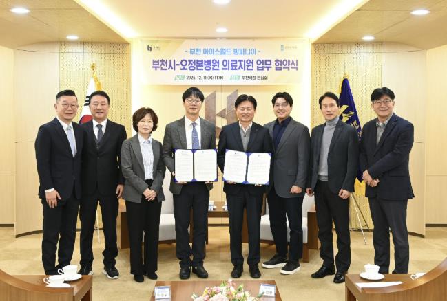 부천시는 지난 11일 오정본병원과 ‘빙파니아’ 현장 의료지원을 위한 업무협약을 체결했다. 이번 협약은 오는 19일부터 내년 2월 22일까지 운영되는 겨울철 야외 아이스링크장 ‘부천 아이스월드 빙파니아’를 찾는 스포츠 소외계층의 안전 확보를 위해 추진됐다.