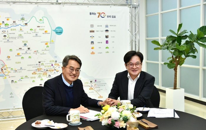 | ▲ 김병수 김포시장은 지난달 3일 김동연 경기도지사를 만나 김포골드라인 등 김포교통현안에 대해 적극 건의했다. |