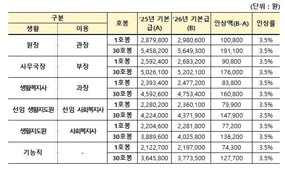 '26년 기본급 3.5% 인상, 국고지원시설 예산은 7.6% 증액