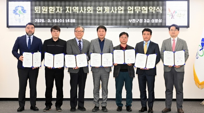 부평구는 16일 퇴원환자의 안정적인 지역사회 정착을 지원하기 위해구청에서 지역 의료기관과 ‘퇴원환자 지역사회 연계사업’ 업무협약을 체결했다.