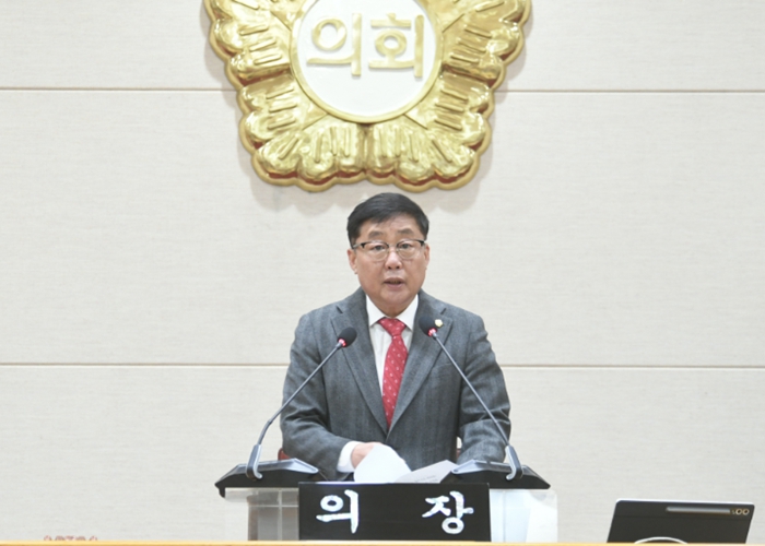 | ▲ 윤창철 의장이 제386회 임시회 제1차 본회의를 주재하고 있다. |