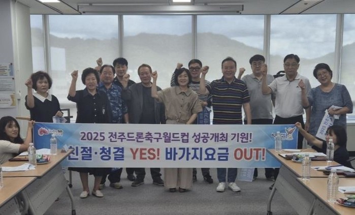 ‘2025 전주드론축구월드컵(FIDA World Cup Jeonju 2025)’ 개막이 불과 1주일 앞으로 다가온 가운데 전주시가 대회의 성공 개최를 위해 지역 음식점·숙박업소들과 함께 위생과 친절서비스를 강화하기로 뜻을 모았다.