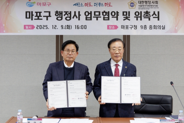 마포구는 12월 9일 오후, 마포구청 중회의실에서 ‘마포구 행정사 시범사업 업무협약 및 위촉식’을 개최했다.
