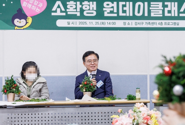 진 구청장은 이날 20~60대 1인 가구 여성 15명과 함께 강서구 가족센터에서 열린 ‘크리스마스 트리 만들기’ 수업에 참여했다.
