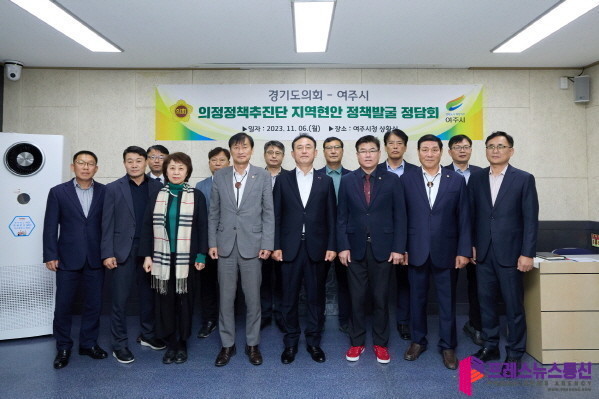 [프레스뉴스] 김대일 기자= 경기도의회(의장 염종현) 의정정책추진단은 6일 여주시에서 ‘지역 현안 정책발굴 정담회’를 열고 여주지역 정책 현안과 도의회 차원의 지원 방안을 논의했다.