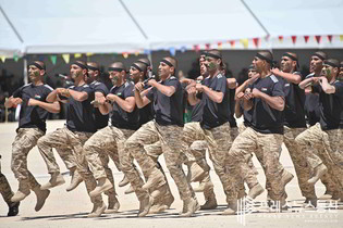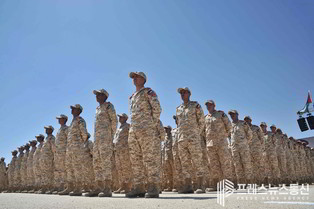 [프레스뉴스] 채정병 특파원=29일(현지시간) 요르단 자르카 국가 군복무 훈련센터에서 열린 제1기 군사훈련수료식에서 수료생들이 연병장에서 총기제식을 하고 있다. 지역 정세불안에 따른 안보강화 등의 목적으로 작년에 법이 통과된 후 올해 2월부터 시작된 의무복무는 요르단 시민권을 가진 전국의 18세 청년들 대상으로 무작위 전자추첨으로 선발되며 3개월간의 기본군사훈련을 받게 된다. (사진=채정병 특파원)