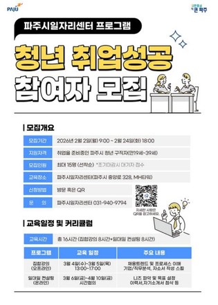 파주시, 미취업 청년을 위한 '청년 취업성공' 참여자 모집
