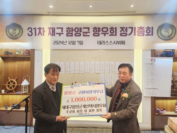 특히 고향사랑기부금 전달식에서는 재대구 함양군 개인택시향우회 주규화 회장을 포함한 회원들이 100만 원의 기부금을 전달하며 고향 사랑을 실천했다.