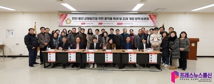 [프레스뉴스] 류현주 기자= 안양시의회 김경숙 의원(국민의힘, 석수1·2동·충훈동)은 지난 12월 24일 시의회 소회의실에서 「만안·동안 균형발전을 위한 용적률 특례 및 조례 개정 정책토론회」를 개최하고, 만안과 동안 간 개발 격차 해소를 위한 다양한 정책 대안을 논의했다.