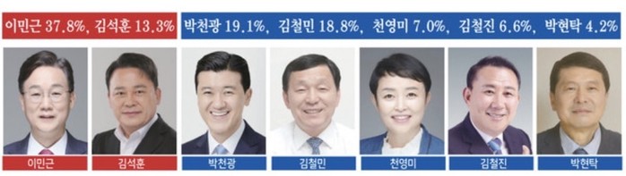 김철민 전 의원이 22.7%로 압도적 1위를 기록했고, 그동안 하위권에 머물던 김철진 도의원이 12.7%로 2위, 그리고 제종길 전 안산시장이 8.1%로 3위였고, 두 번의 조사에서 괄목할만한 순위에 올랐던 박천광 후보가 7.8%로 4위를 나타냈다.