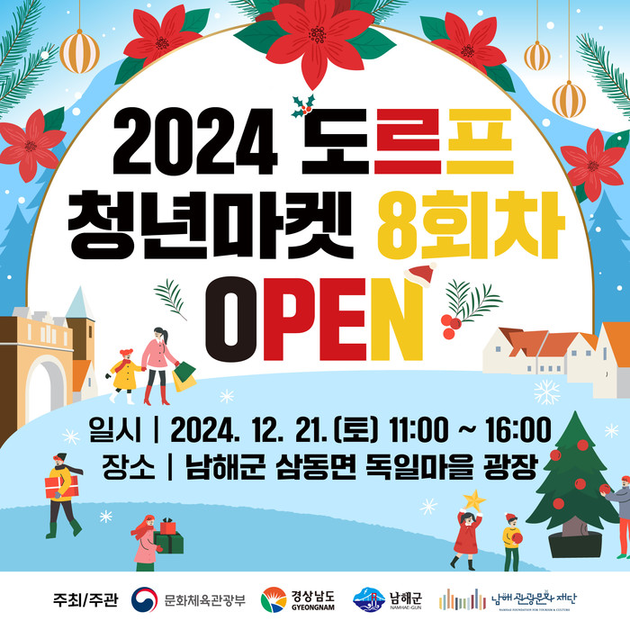 남해군관광문화재단 조영호 본부장은 “8회 차를 맞이한 도르프 청년마켓이 화려한 대미를 장식할 수 있도록 마지막까지 많은 관심과 참여 부탁드린다”며 “2025년에도 지속가능한 특화관광상품으로써 독일마을광장에 활기를 불어넣을 수 있도록 더 발전된 도르프 청년마켓으로 돌아오겠다”고 밝혔다.