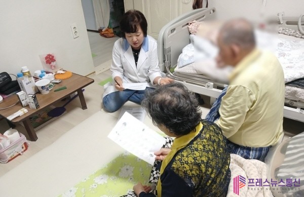| ▲의사, 간호사, 사회복지사 등으로 구성된 다학제 의료팀이 가정을 방문해 맞춤형 의료서비스 계획을 안내하고 있다.(사진=안산시) |