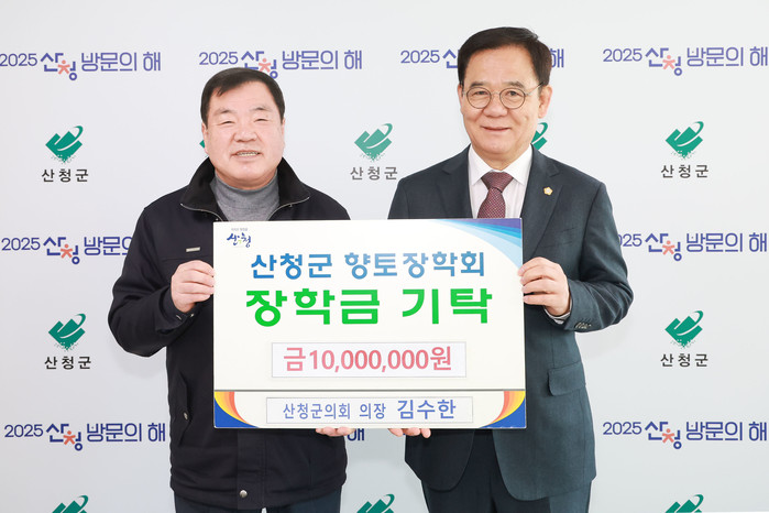 [프레스뉴스] 정재학 기자=산청군은 8일 김수한 산청군의회 의장이 군청을 찾아 향토장학금 1000만원을 전달했다고 밝혔다.