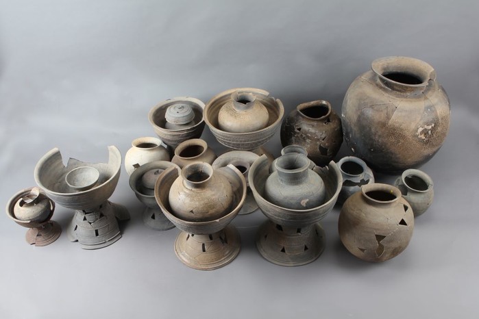 출토된 토기는 26점으로 길이 3.1m 폭 1.6m로 대형목곽묘의 유물부장공간으로 추정되는 곳에서 확인됐으며, 토기의 종류는 그릇받침 8점, 항아리 14점, 뚜껑 2점, 굽다리접시 1점, 큰항아리 1점이다.